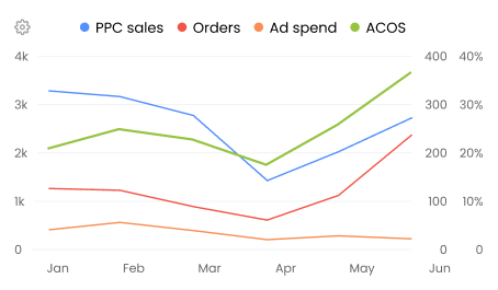 Verschaffe dir einen schnellen Überblick über deine gesamte PPC-Performance oder tauche in eine detaillierte Analyse der Dynamik einzelner KPIs ein.